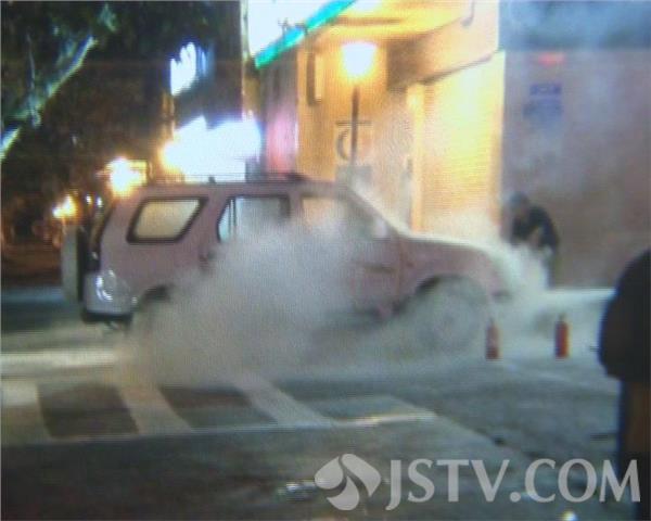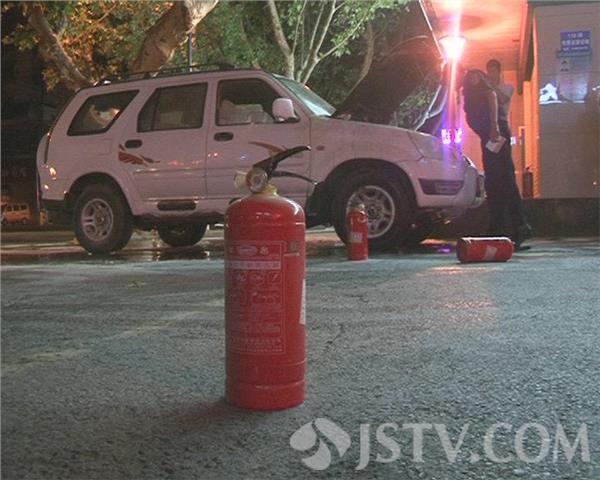 记者赶到时,火已经被扑灭。越野车除了一些线路被烧毁外,其它部件并没有其它损伤。越野车司机王师傅表示,当时他刚刚点火发动车辆,突然引擎盖下方窜出了火苗。由于这辆车是跟朋友借来的,当时车上并没有灭火器,王师傅一下子惊慌失措,他一边报警,一边跑到旁边的一家宾馆求助,宾馆负责人陈先生迅速取出六个灭火器与王师傅一起将明火控制住。随后赶到的消防队员用水枪将余火扑灭,所幸车辆损失并不大。司机王师傅对宾馆陈先生的及时帮助表示了感谢,并愿意承担罐装灭火器的费用。警方提醒夏季高温车辆,车上一定要配备灭火器,以备不时之需。