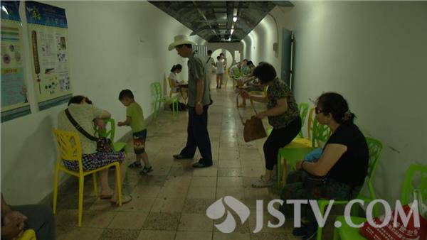 首先记者来到了南京的北极岩人防工程防空洞,室外的温度已经达到37度,走进防空洞凉意扑面而来,温度计上的数字一下降到了28度,现场看到已经有不少市民在这里避暑乘凉了。嗑着瓜子、打着牌,天然的'空调',让防空洞内外仿佛两个世界。瞧这几位老人家,不但组团前来,还带来了瓜果点心,一位老人介绍,早上9点就来了,准备一直到下午5点关门再走,带了吃的,这样中午就不用出去吃午饭了。不少在附近景点玩累了的游客,也选择在这里歇歇脚。防空洞里的免费茶水、便民小药箱,成了防暑神器。