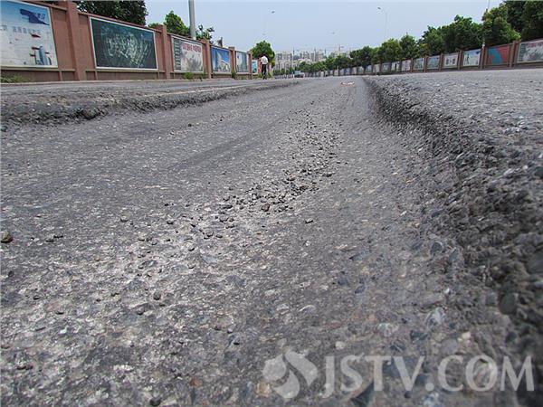 “热死人”,这个词这几天已成南京市民的口头语,夏季高温是正常现象。不过持续几天高温,在双重压力下,柏油路面严重凹陷,路面特别颠簸,波浪起伏的。仔细看了下,路中间有一道道车轮印,有近百米长,变形的马路给道路交通带来一定的安全隐患。