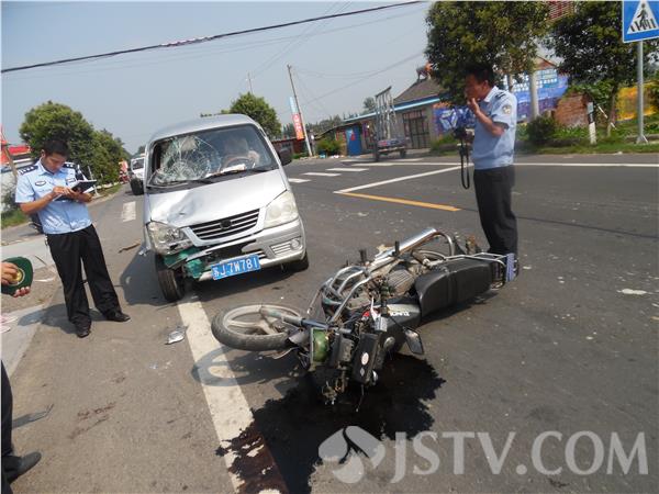 8月2日下午2时许,在兴化332省道老圩安东村路段,一辆由东向西行驶的面包车突然撞上一辆左拐入岔道的摩托车。由于摩托车手没有戴头盔,头部撞在面包车挡风玻璃上形成一个大窟窿。