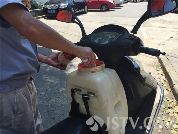 居民们都说,以前倒从没见过这种虫子,人只要被这种小虫子咬过,皮肤就会又红又痒,关键是大家都不认识这种虫子,不知道它的危害,也不知道怎么杀灭、预防。随后,当记者将小虫的图片拿给消杀中心的陈师傅看时,陈师傅一下子就认出了这种小虫。陈师傅表示,消杀中心经常与各种飞虫打交道,他们将这种小虫俗称“黄飞虫”,人被叮咬之后常有红肿反应,但是,不会有太多毒性,一般不会造成疾病传染,使用广谱性的杀虫剂就能够将其杀死。随后,陈师傅将专业灭虫剂---毒死蜱进行稀释配比后,对整个小区特别是垃圾桶附近进行了集中消毒杀虫。
