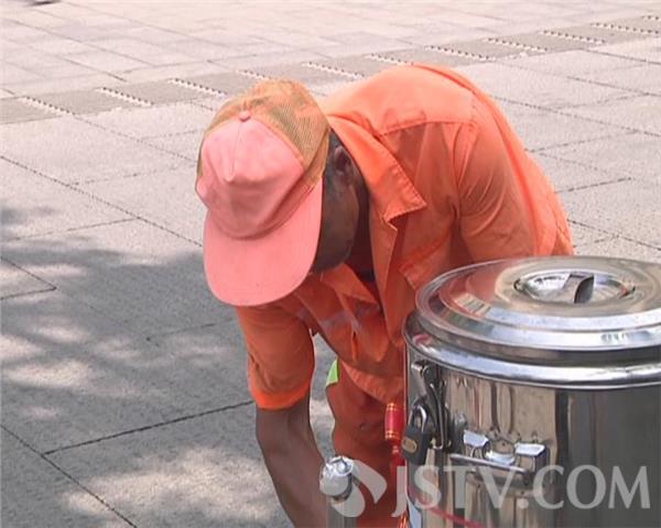 由于耗损的问题,20年来,茶水桶已经升级换代了10个,每天提供给大家的热水有150升,20年这个数字多达2000吨。给路过的市民、往来的游客以及在附近工作的环卫工人提供了很大的便利。