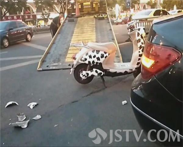 在现场,奔驰车停在超市入口处,车身右侧已经被撞扁了,损失很大,而电动车则前部基本被撞毁,小伙胳膊和手都受伤了,车子则推都推不动了,满地都是电动车碎片。骑车小伙介绍,自己当时汽车从北向南,开到这里时,奔驰车突然从机动车道转弯开进超市,越过非机动车道的时候,自己看到,刹车已经来不及了。看到自己的奔驰车受伤这么惨,而且是被没有赔偿能力的电动车撞的,奔驰车司机也很肉痛。