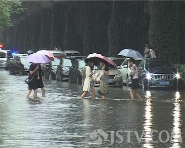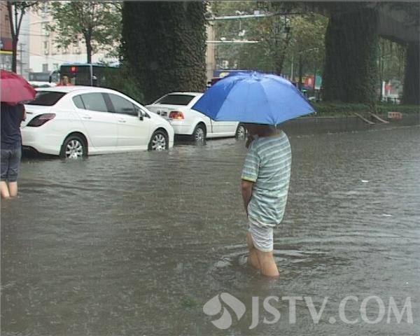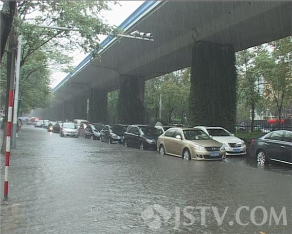 8月10号下午15:15分左右,南京大桥南路,由北向南路段,有市民报警称,称该路段又淹水了,家乐福超市附近更是已积水达40---50公分,因为积水太深,许多轿车都停下来,底盘底的车辆只得停车等水位下降后再走。