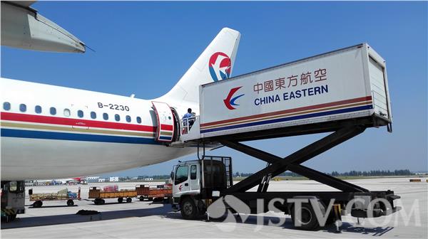 13:30,江苏东航食品公司特车驾驶员蒋祥兵驾驶着一辆标有“中国东方航空”字样的送餐车正缓急有序地驶向MU2815航班。在靠近飞机前,车长周长健提前到达飞机后舱门下端指挥车辆,在车辆减速、靠拢并最终到达指定位置后,周长健再放好轮档,确认车辆安全停稳。随后,驾驶员和航机员按照操作规则,分别释放车辆液压支撑和升起车厢,并小心翼翼地让车辆收缩平台靠近舱门。