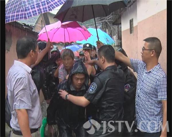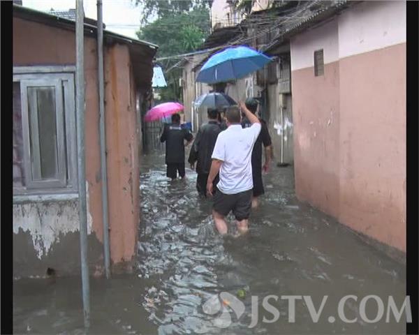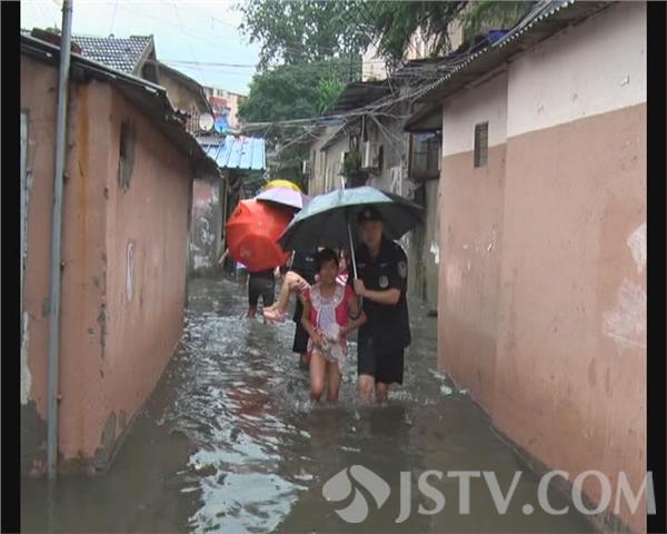 昨天下午3点多钟,南京栖霞区华电路44号小区,积水深达7、80公分,一楼居民家中全部进水,老人小孩被困家中,无法出门,多人报警求助,迈皋桥派出所考虑到暴雨一时半会儿停不下来,立即派出数名民警赶到现场救援。他们挨门逐户喊话,将被困的老人小孩全部转移到安全地带。很快,迈皋桥街道和城管的工作人员也赶到现场,和民警一道冒雨转移被困人员,大雨淋湿了救援人员的衣服,但他们毫无怨言,为被困人员撑伞遮挡风雨。截止下午5点多钟,他们共转移被困人员30多人。所有被困人员被街道统一安排到宾馆休息。随后,城管又组织小型抽水机泵,对小区积水进行抽排。而在昨天晚上6点多钟,鼓楼区宝善街九家圩40巷的一对患病老夫妻也被困在家中,阅江楼派出所的民警接警后赶紧趟水来到现场,只见这对老夫妻中的丈夫邢师傅正站在床上等待救援。