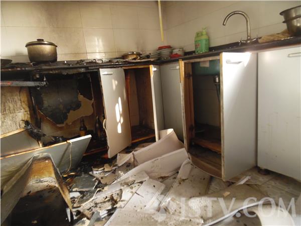 荔枝新闻记者赶到现场时,只见一只煤气罐已经被消防官兵拖到门口,煤气罐连接管根部也已经被烧焦,只见别墅里浓烟滚滚,看着烟雾渐渐散尽,荔枝新闻记者走进厨房,只见煤气灶已经被烧得焦糊,下面的灶台也被炸烂,煤气灶上面的油烟机肚子已经被炸没了,整个厨房天花板已经是一片焦黑,天花板上面的扣板被炸成一个个条状悬浮在空中,厨房北侧的纱窗也被炸得脱落下来,纱窗也被炸了一个窟窿,据女主人介绍,她将早饭放在煤气灶上面烧,刚出厨房不久就听见轰的一声,厨房里瞬间浓烟滚滚,霎时一片狼藉,赶到现场的消防官兵及时疏散围观群众,拖出煤气灶,据女主人介绍,煤气灶昨天是刚刚修好带回家,她怀疑煤气灶修理有瑕疵,目前火灾具体原因正在调查之中。