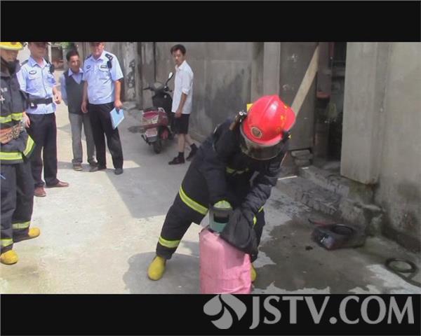 8月12日中午12时,盐城市城南新区伍佑镇街道唐子巷33号,一居民家中的煤气罐突然起火,火苗从罐体的阀门处喷出,市民随即拨打了报警电话。