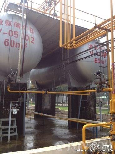 据了解,该厂区主要工作是生产和储存名为“百草枯”的农药。百草枯本身并不是危险品,但生产所需要的液氨、乙醛等原料,则是易燃易爆品。在工作人员的陪同下,记者来到了储存原料的罐体旁。工作人员表示,生产百草枯所需的原料只有乙醛、液氨和氯甲烷,每样的存储量也只有200-300立方米左右。