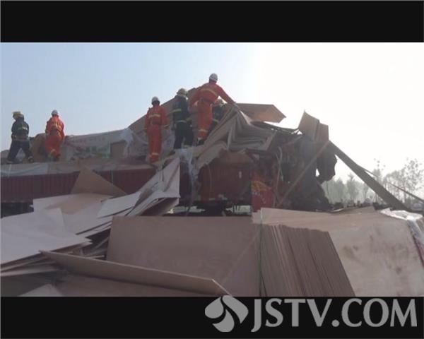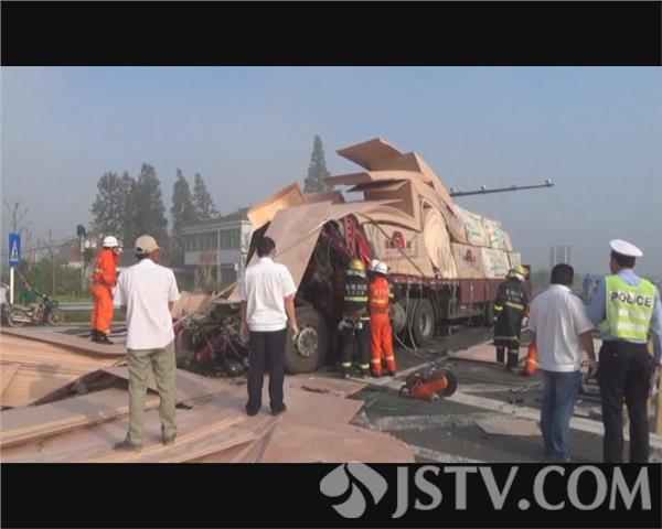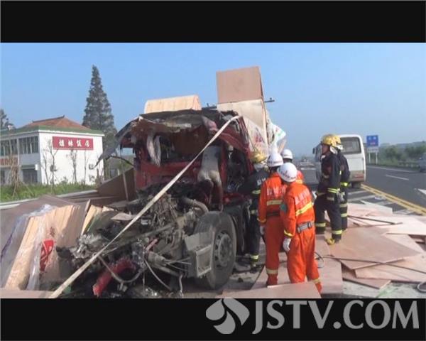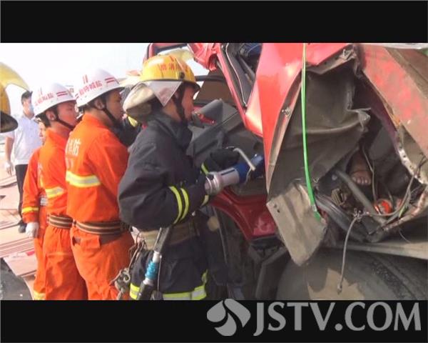 8月14号上午7时,盐城市亭湖区黄尖镇涵洞村门前的十字路口,因受到雾天影响,后方车辆处置不当,导致两辆货车追尾,后方两名司机被困变形的驾驶室。接到报警后,公安、消防、医疗部门紧急赶赴现场进行处置。