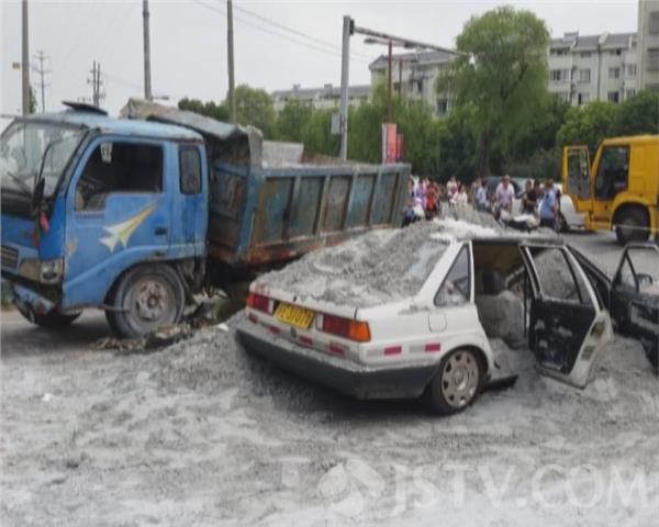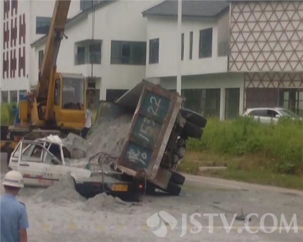 昨天(8月15日)上午10点左右,苏州观山路驾驶员考试中心附近发生一起交通事故,一辆自卸王和一教练车相撞后,自卸车压在教练车上,一车黄沙倾泻而下,将车内一名学员压在车下。