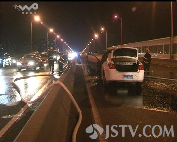 昨晚(8月24日)7点半,南京应天大街高架 由西向东方向,一辆新买的轿车,突发自燃,由于正值晚高峰,后方车辆拥堵了近一公里。
