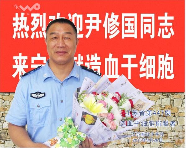 2015年8月26日上午,也就是明天,宿迁警察尹修国将在东南大学附属中大医院血液科捐献造血干细胞,他的造血干细胞将挽救一位与他同龄的白血病患者,与此同时,他也将成为江苏省分库的第447例捐献者。