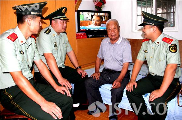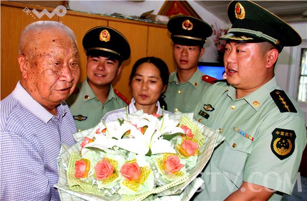 2015年8月25日下午,武警扬州边防站仪征监护二中队的官兵带着鲜花和慰问品,来到百岁抗日老兵姚一汉家,看望这位抵抗外来侵略为共和国解放作出过贡献的老兵,同时接受爱国主义教育和优良传统熏陶。