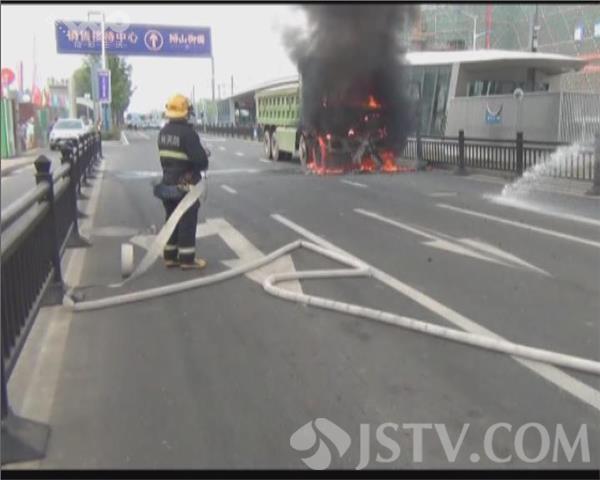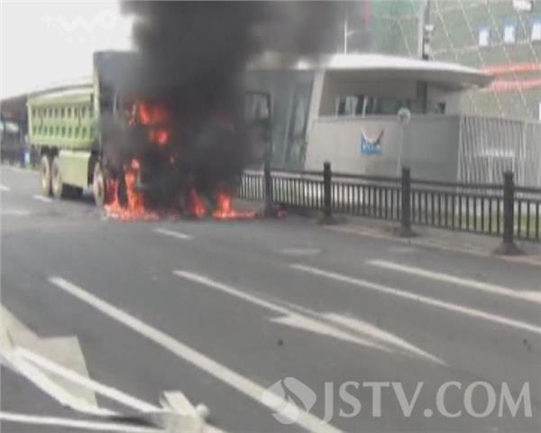 8月27日中午11点左右,苏州有轨电车1号线苏州西站边一辆绿色渣土车突然停了下来,接着就突发自燃,火势逐渐增大,并呈蔓延趋势。在苏州乐园站台执勤的保安第一时间报告有轨电车控制中心,控制中心迅速拨打119报警,并通知高新有轨电车公司安技部、供电部、工务通号部前往现场进行处理。消防、交警、民警第一时间赶到现场,迅速控制了火势。为了保证乘客安全和运营安全,方便消防部门灭火,有轨电车公司工作人员将站台人员进行疏散,组织对该路段供电分区进行停电,要求全线列车在龙康路至金山路进行小交路运营,以避开火灾事发路段。