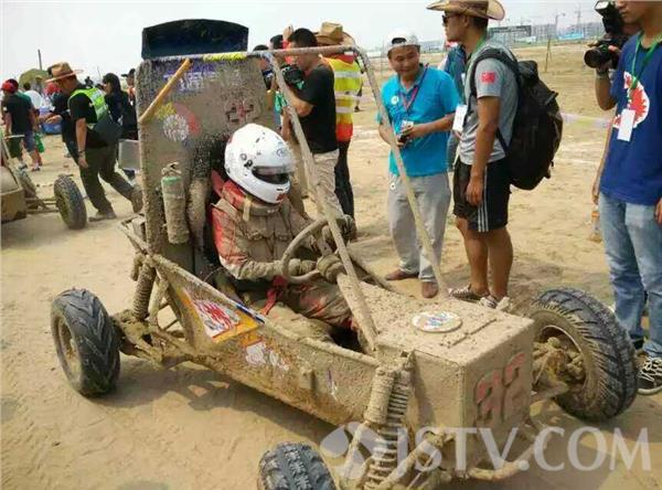 荔枝新闻记者发现,车辆的造型看上去颇为简陋,除去那四个车轱辘,一般人还真看不出来这居然是辆车!然而,就是这种简陋的车型,成就了巴哈大赛狂野激情的本质。
