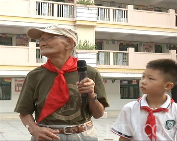 今天上午,在南京市长江路小学,小朋友们的开学第一课正在操场上进行,今天给他们讲课的不是学校的老师,而是一位91岁的抗战老兵爷爷。