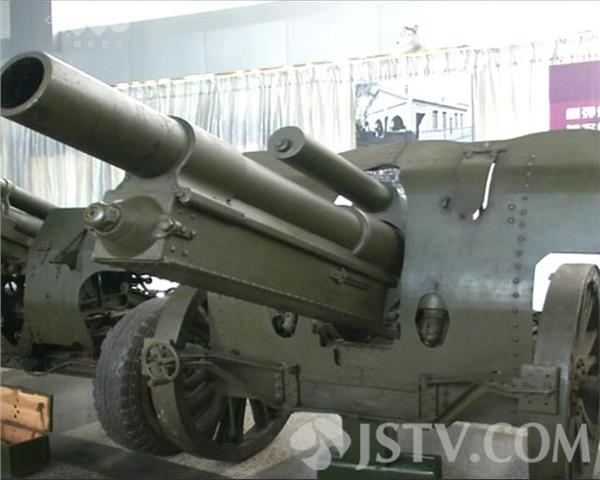 此次展出中,价值最高的'镇馆之宝'是晋造150毫米榴弹炮。它是全面抗战爆发之前,中国制造的口径最大的火炮。更为难得的是,因为战争损毁等原因,它已经成为同类型火炮当中,全世界仅存的一门。南京理工大学兵器博物馆志愿者介绍,当时生产一门炮,需要50万个大洋,算是当时天价的武器。抗日战争爆发很短一段时间内,日军攻入太原,把太原兵工厂攻陷,阎锡山当时只运出了很少一部分的机器设备。在八年抗战过程中,运出的这两门火炮丢失了一门,所以它成了全世界唯一的一门。