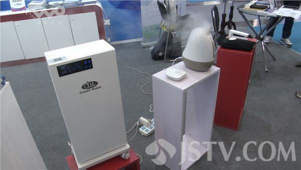 展台负责人介绍,当检测仪发现家里的空气不好的时候 那么相关的空气净化器,加湿器,取暖器 空调等等都会随之联动,可以做整套的智能环境的系统。通过手机操作和智能感应,就可以把家里的空气质量、温度和湿度调节到一个最舒适的状态。