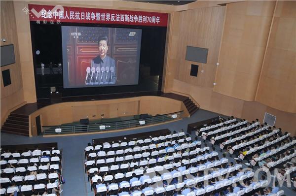 南京航空航天大学今天(9月3日)组织了两千多名学生集体观看中国抗战胜利70周年阅兵仪式现场直播。活动现场设置了微信留言墙,不少同学留下“我骄傲我是中国人!”“我爱中国”等话语。