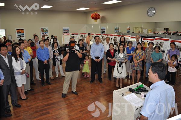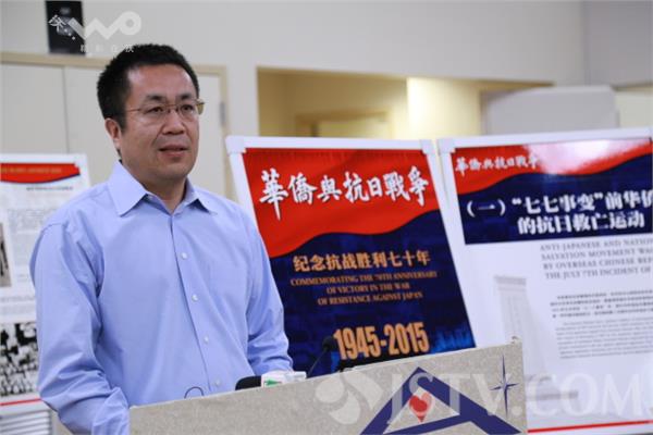 中国驻美大使馆参赞兼副总领事李民出席开幕式并致词,他赞誉「华侨与抗日战争」图片展,全方位展现广大华侨积极参与抗战的历史,其中涌现许多可歌可泣的人物与事迹,包括3000名华侨机工回国参加抗战、支持中国抗战的美国飞虎队等千古留存的感人事迹与内容,充分显示出华侨在抗日战争中的无私无畏的贡献,希望主流社会能了解到华侨的可歌可泣的付出。他希望本次展览不仅是教育下一代,当下50、60岁的一代人也未曾经历过那场战争,长期生活在和平年代观看画展唤起民众对这段历史的了解及记忆,教育后代热爱和平。