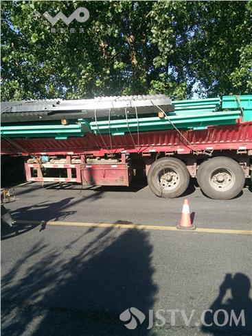 荔枝新闻网友赶到现场时,只见一辆红色大卡车停在公路西侧,车辆东侧的卡车挡板已经被挤压变形,好似鸟的翅膀伸出车外,如果不是锥形桶将其隔离开来,后面的车辆撞上去后果不堪设想,据车主介绍,车上装载的是机器上的钢条,凌晨时分由北向南行驶过程中车上的钢条突然向东倾斜,随后一部分钢条掉到公路上,影响了道路通行,他们随即报警,接到报警的交警赶到现场后先和车上人员一起将散落在公路上的钢条移到公路下面,然后用锥形桶设立警示标志,据调查,出现货车挡板被挤压变形是因为车上物品超载所致,目前交警已经联系吊车赶往现场,帮助货主驳载货物,及时恢复交通,消除安全隐患。