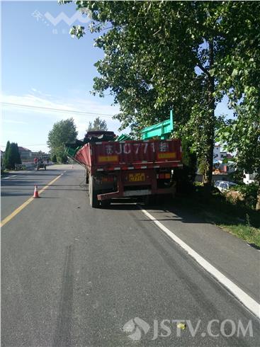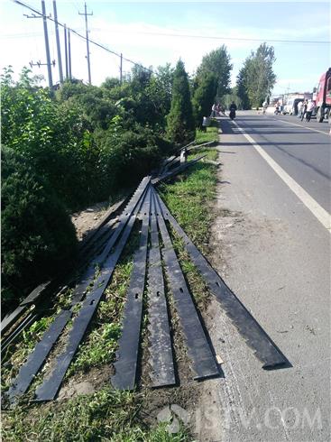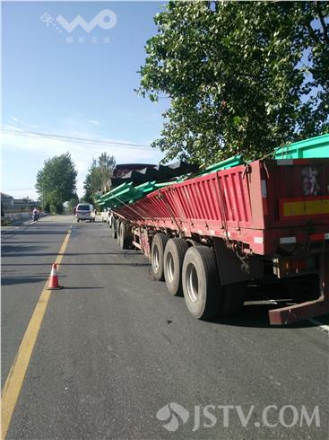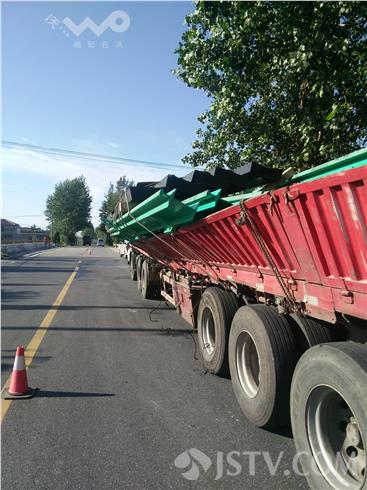 9月8日凌晨在泰州兴化229省道安丰双葛桥北侧出现惊险一幕,一辆满载机器钢条的红色大卡车行驶中突然钢条都向东侧倾斜,导致卡车东侧挡板被挤压变形,许多钢条都掉落公路边,而变形的卡车挡板向伸出的翅膀随时威胁着过往车辆的安全,接到报警的交警赶到现场后先用锥形桶将事故车隔离开来,随后将掉落在公路上的钢条移到护坡下面,目前车主正在组织车辆驳载。