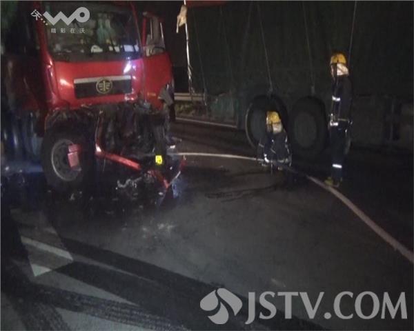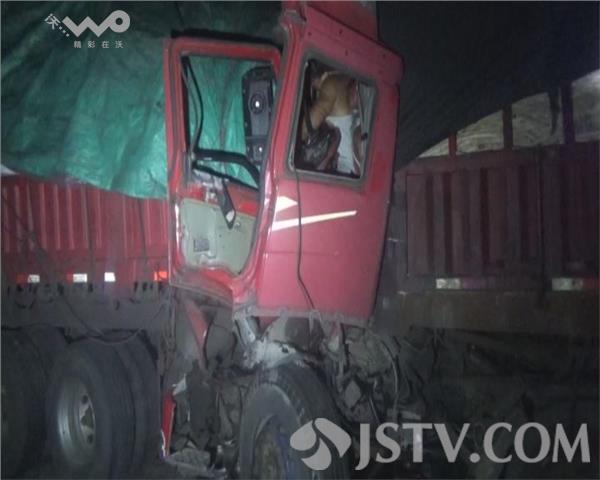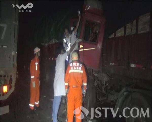 昨天(9月9号)凌晨1点多,京沪高速扬州高邮段往北京方向,两辆大货车追尾,后车严重挤压变形,两人被困狭小空间。