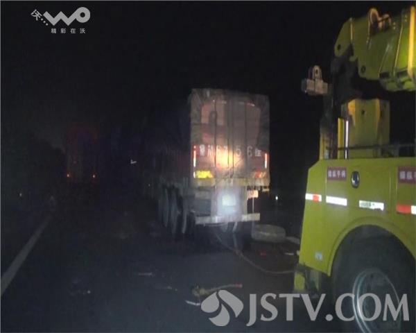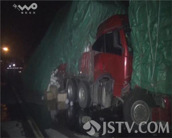 事发后高速路段被封闭,一辆大货车与前方装载棉线的半挂货车追尾。后车驾驶室严重变形,司机受伤被困,身上大滩血迹,毫无知觉。救援人员打开照明灯,仔细查看男子被卡情况,医务人员给男子打点滴,输液。由于撞击力度较大,后车驾驶室完全被挤压,救援作业困难。现场调来高速清障车,将两辆货车开,车内另一名男子露了出来,且地面漏有大量柴油,为防止作业过程中产生火花,出现意外,消防人员赶紧用水将油污冲掉。随后,旁边货车做牵引,将事故车车头拉开,两名被困者救出,送往医院急救检查。不幸的是,两人因伤势过重身亡。目前,具体事故原因正在调查中.