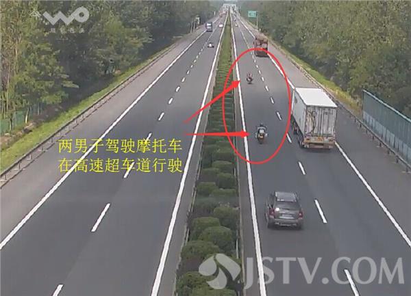 监控显示,两辆摩托车在高速的超车道上行驶,还不时的穿插其他正在行驶的车辆,迅速消失在监控视线中,情况是十分的危险。中午11点多钟,两辆摩托车在苏鲁省界收费站被执勤民警姚立生拦截下来。