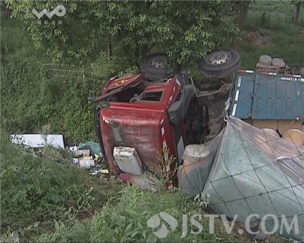惊魂未定的驾驶员告诉记者,他头有点晕,脸上刮破了皮,别的没事。据他说,他是从山东运货到南通的,经过这里时,高速公路上突然出现了一只小动物,让他慌了神。