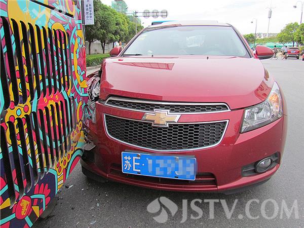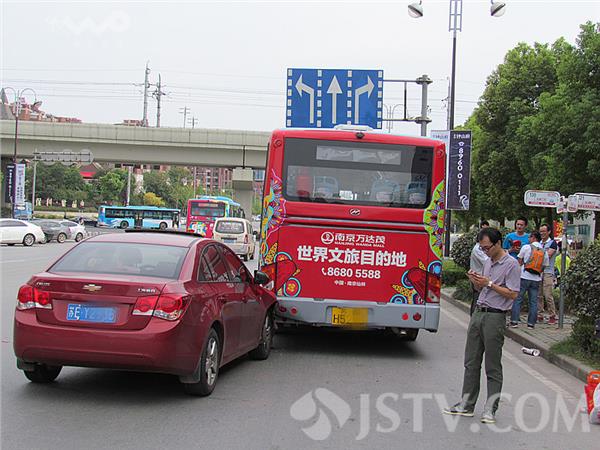 9月13日下午2:30左右,南京玄武区仙鹤门公交站台前发生一起交通事故,一辆外地轿车与前方的公交车未保持安全车距,公交车到站停车上下客,轿车司机刹车不及追尾撞上,车损严重,所幸这起事故没有造成人员伤亡。