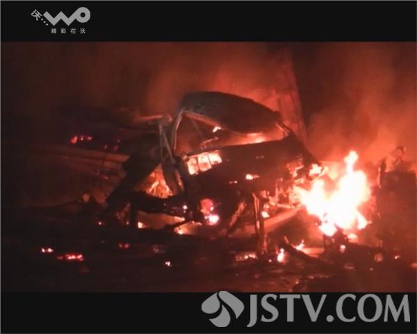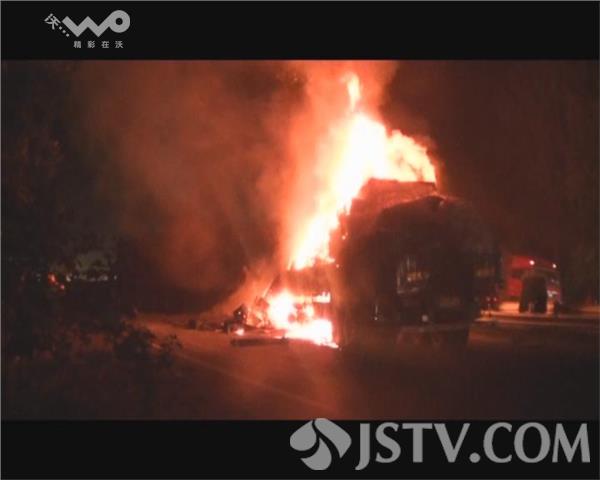 在现场可以看到,两辆货车是浓烟滚滚,火光冲天,正处于处于猛烈阶段,现场货车车体已经被大火团团包围。消防指挥员在经过火势勘察后,立即下令出两支水枪对火势进行扑救,经过两小时战斗,火被彻底扑灭。