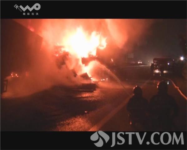 9月15日凌晨3点09分,有市民报警说,在205国道淮安市淮阴区五里镇境内,有两辆正在行驶的货车突然发生相撞,导致两辆货车突发大火,淮阴区王营消防中队立即赶往现场进行扑救。