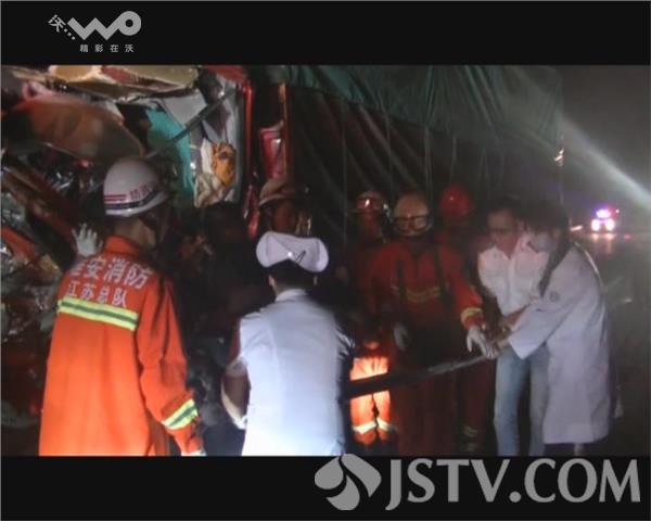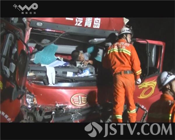 9月14日晚上10点48分,淮安市王营消防中队接到报警称:位于宿淮盐高速淮安西收费站往徐州方向56公里处,发生了两车追尾的事故,其中有一名司机被困,王营消防中队闻讯后迅速前往现场实施救援。