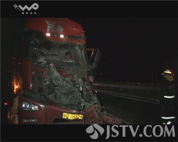 9月16日凌晨零点三十分左右,在国道228线盐城射阳县黄沙港大桥南侧的灯控十字路口,发生一起两车追尾事故,一辆由南向北的大货车在路口等待绿灯通行时,遭到另一辆同方向行驶的大货车追尾,事故导致后一辆大货车驾驶室后移,司机被困在变形的驾驶室内无法动弹,车辆损坏严重,由南向北行驶的车辆通行受阻。