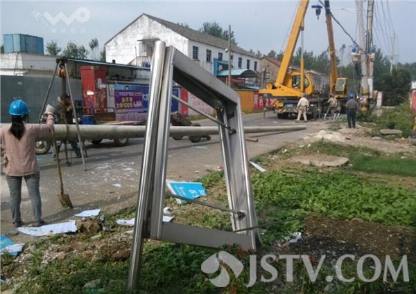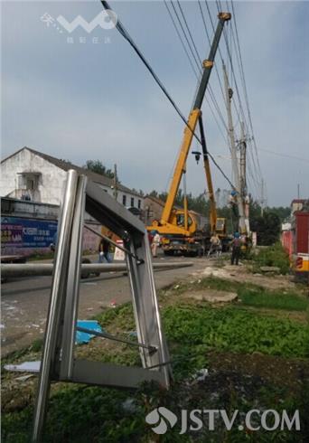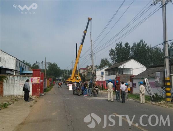 9月17日上午8点,有淮安市民爆料称,淮安市和平镇小街上有一个公交临时站台和西侧电线杆被轿车撞毁,由于撞击冲击过大,导致电线杆上的变压器损毁,现场供电部门正在紧急抢修更换电线杆和变压器。