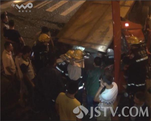 9月17日凌晨03时02分,无锡市新区梅村镇G312国道与吴都路交界处发生一起交通事故,一辆装有钢板的大货车由于遇到红灯踩急刹导致后面钢板惯性向前撞毁车头,车上两人机智俯身躲过一劫,却被困于毁坏的车内。