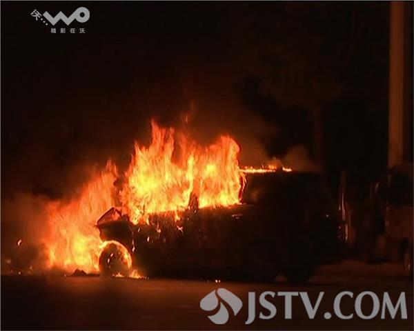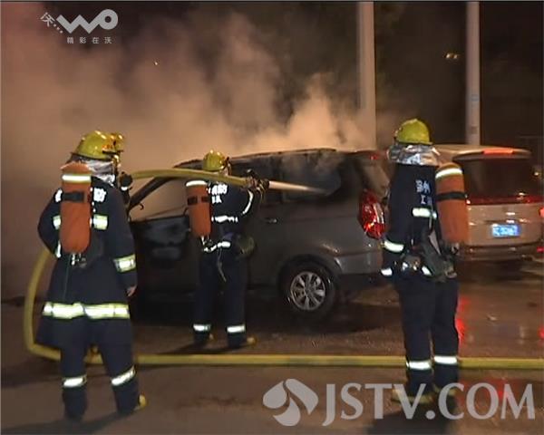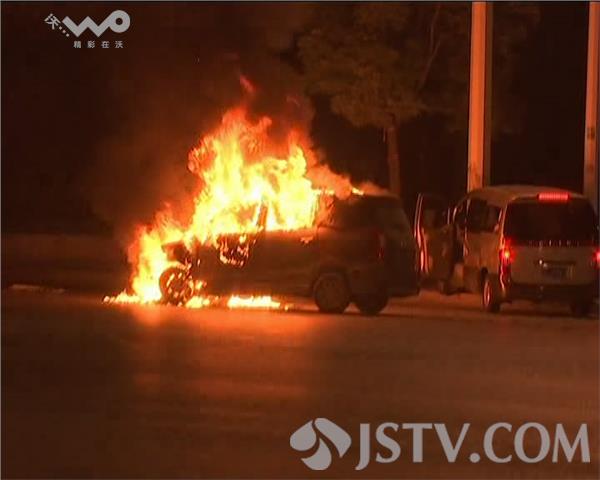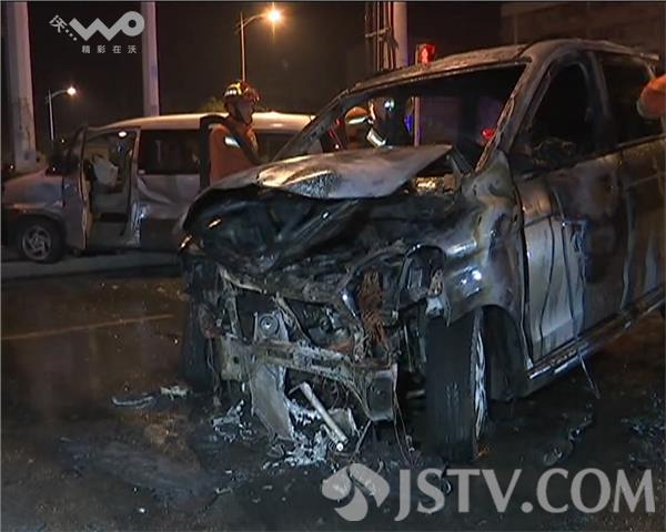 据面包车司机苏女士介绍,她当时驾驶这辆着火的面包车由西向北左转弯,就在转弯的时候与这辆迎面而来的商务车撞在了一起,随即车辆就发生了自燃。