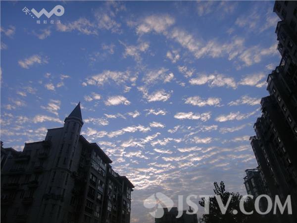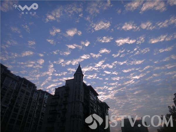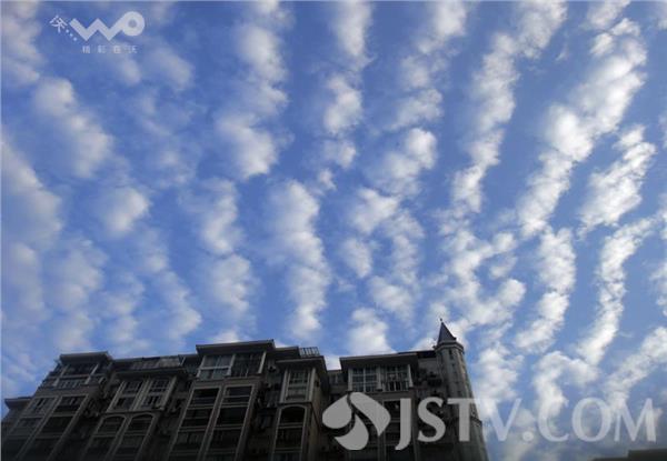 今晨,荔枝新闻记者所拍摄的“鱼鳞云”常朝一个或两个方向整齐地排列,云块之间有明显的缝隙。云呈扁圆形、瓦块状、鱼鳞一样排开,成行排列。江苏气象台专家、首席预报员韩桂荣介绍,出现这种云,一般预示着天气要变化,民间因此有“天上鱼鳞云,地上雨淋淋”的说法。