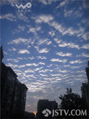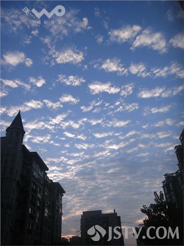 今天(9月24日)早上,南京上空出现了密密麻麻的““鱼鳞云”。据气象专家称,这预示着未来几天或许有雨。“鱼鳞云”在气象学上叫“透光高积云”,是秋冬季强冷空气来时出现的一种天气现象。一般而言,冷空气来之前,云层较高,数量也不多。冷空气来后,云层逐渐压低、加厚。