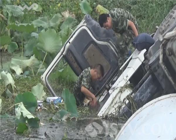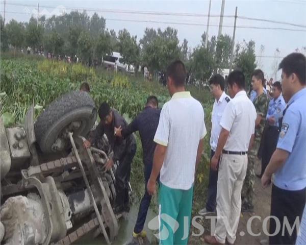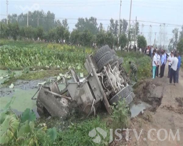 9月25日7时30分许,淮安市车桥镇丰年村段一辆混凝土搅拌车,在倒车时不慎侧翻在路边的河塘内,事故造成司机被困水中,当地公安、消防、急救等部门接到报警后,迅速赶赴事故现场实施救援。