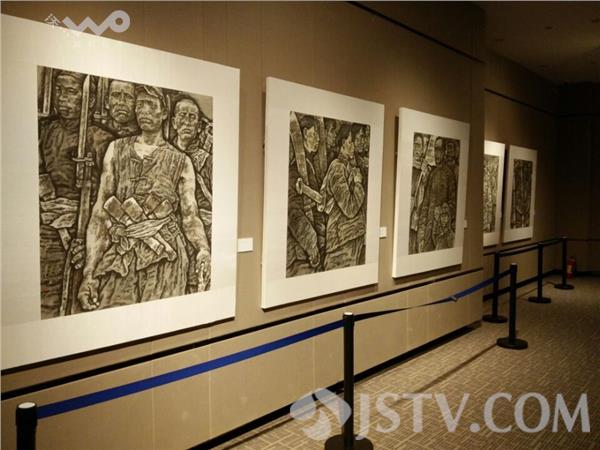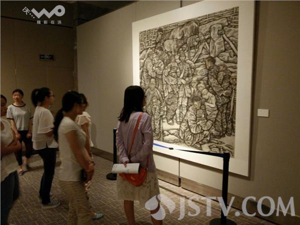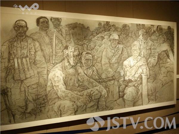 这次“浴火”画展,是中国人民抗日战争暨世界反法西斯战争胜利70周年一次重大的活动,本次展览选取了自1979年至今的108幅战争题材的作品,直面黑暗,直面战争,以恢弘的气势,大气的笔触,歌唱着中国人民在国家和民族遭到日本侵略者践踏和蹂躏的时所做出的伟大牺牲。每幅作品都承载着厚重的历史,满含着中华民族的伤痛耻辱与不屈不挠的精神,点亮了每一位中国人的良知与觉醒。特别是赵奇老师特意为本次南京展览创作的一幅十几平尺的大画《长歌?南京英魂》,以一种纪念碑式的画面纪念68年前的那场大规模屠杀和南京战士的浴血卫城,画面虽简洁,却蕴含着极为丰富的的内容,吸引了大量观众驻足围观。