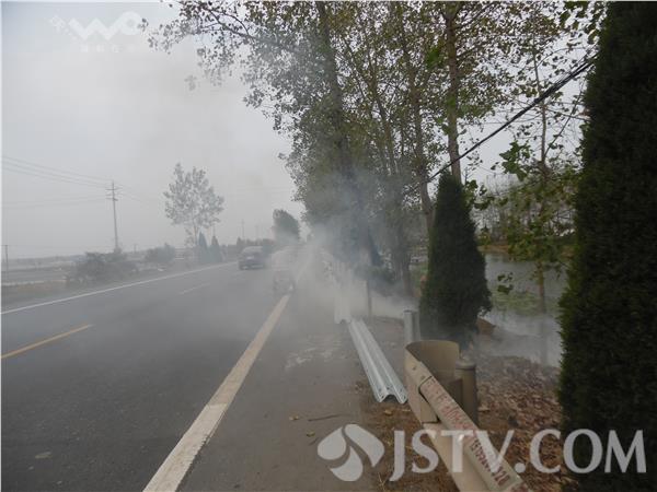 9月26日下午,泰州兴化229省道安丰横港桥北侧一老农在清理公路下面的护坡时将散落的树叶点燃,导致公路上浓烟滚滚,不但呛人危害环境,且浓烟散发到了公路上影响了车辆的安全行驶。