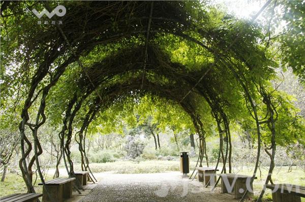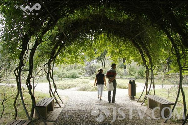其实在南京莫愁湖的海棠花卉园也有一个类似“爱情隧道”的景点,它虽然没有铁轨,但它有个入口,进入门洞后是一个由钢管弯曲成圆形的巨大花架,上面密密麻麻缠绕各式藤萝,可谓绿荫华盖。两旁还设有长条木凳,游客在公园玩累了以后可以在这儿休憩。由于来这的多为情侣或中老年夫妻,因此,这里也被一些游人称之为“爱情隧道”,市民孙大爷说,国庆长假来临,市民们不妨去莫愁湖公园看看,游爱情隧道何必舍近求远去江宁呢。