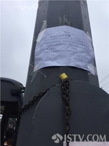 在现场的水泥柱上一名男青年被用铁链锁在水泥柱上,旁边还贴着一张公告,公告内容大致为:该镇安民村王某在外欠了太多高利贷,家人已经对其失望,父母不再为其还债,希望大家不要借钱给他,他已经无法偿还。上面还署上了姓名。