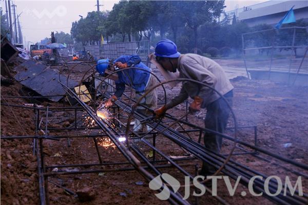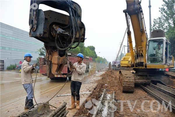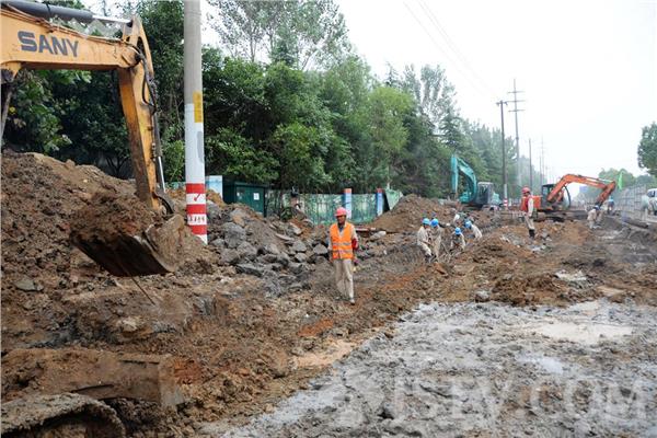 受台风“杜鹃”影响,南京雨量中到大,局部暴雨。南京公司施工人员放弃国庆假期休息,抢抓雨停间隙,坚持施工。