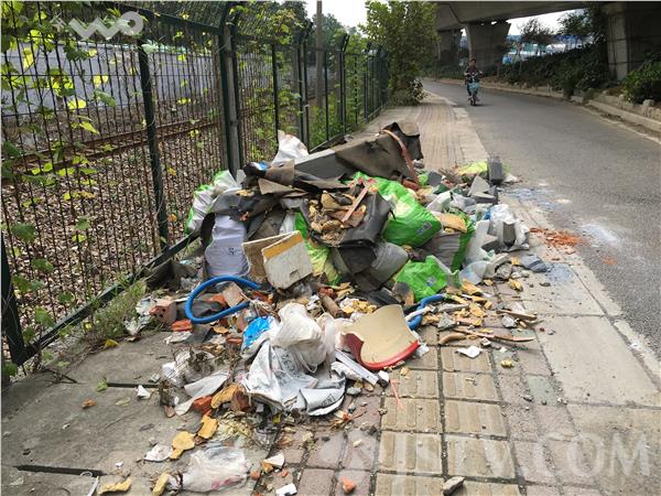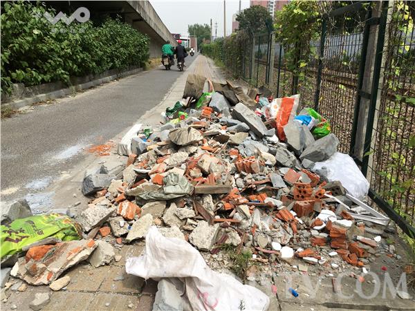 笔者发现,这堆垃圾有一卡车之多,占了大半个非机动车道,里面大多为建筑垃圾,红砖和木材废料清晰可见,其中还有少数的市民生活用品,如:花盆、水管、塑料布等。这一车建筑垃圾什么时间倒的?为什么要倒在这里?有市民怀疑,可能是市民家中装修建筑垃圾,司机图省钱省事,也不管行为好不好,夜间把垃圾偷倒于此。