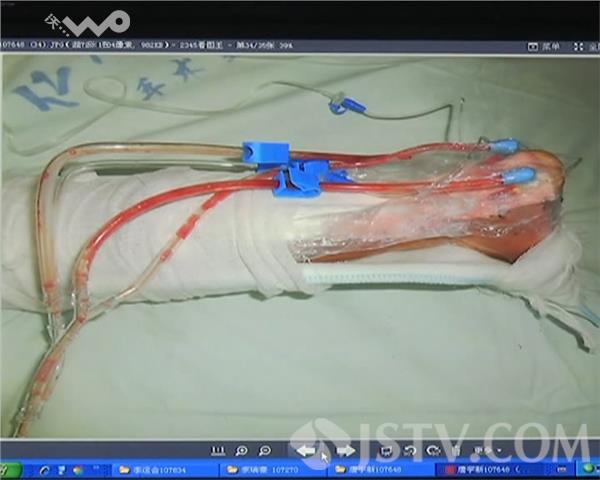 10月7日下午,记者在徐州仁慈医院一楼的抢救室内看到了小宇新,医生说小宇新的伤势非常严重,目前还没有度过危险期。小宇新的爸爸告诉记者,在10月2号的下午,他骑电动车带着两个女儿去走亲戚,途中两个孩子都坐在电动车的后排坐位上,由于孩子玩皮,一不小心就把脚伸进了电动车的后车轮里。