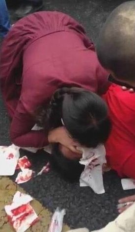 画面中,受伤的中年妇女倒在地上,昏迷不醒,嘴巴和鼻子不停地往外冒出鲜血,一位身穿紫红色裙子的女子正跪在地上给她做人工呼吸。记者通过多方寻找得知,救人的女子是盐城市第一人民医院的护师蔡慧,事发当天,她正好路过车祸现场。